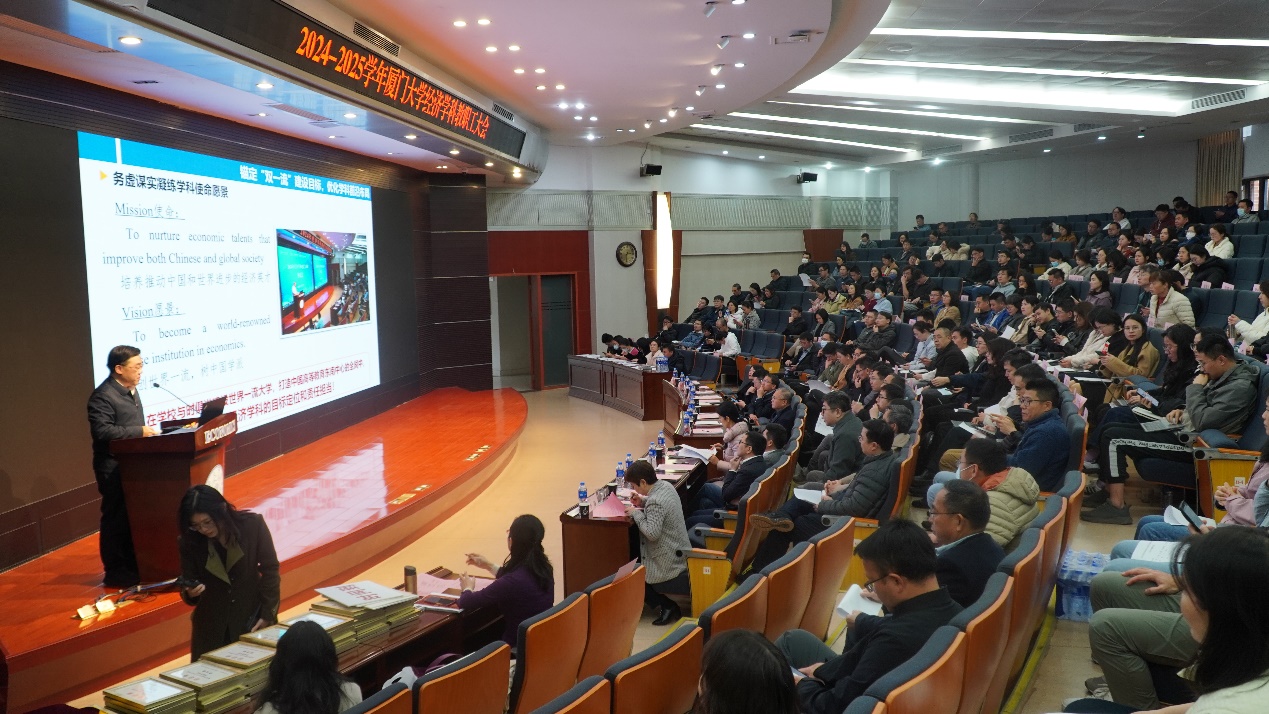 3月7日,厦门大学经济学科在经济楼举行2024-2025学年教职工大会。会上,学院领导及各系所中心负责人就过去一年的工作进行总结,同时,面对新形势、新目标和新任务,规划和展望新一年的工作。大会由经济学院党委副书记李静主持。经济学科教职工出席大会。
